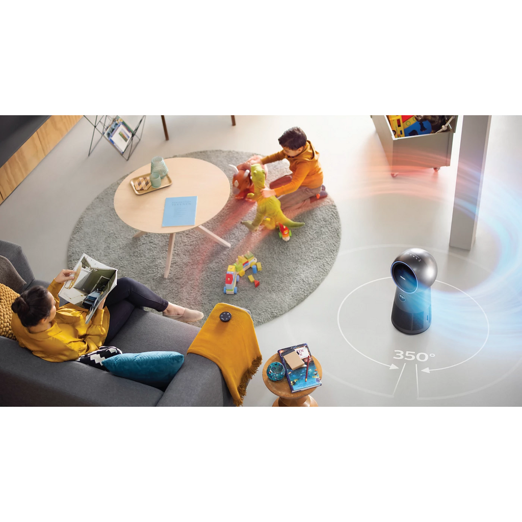 無扇葉設計產生持續不斷的淨化空氣,而不會暴露其快速旋轉的扇葉,令使用時更為安全。