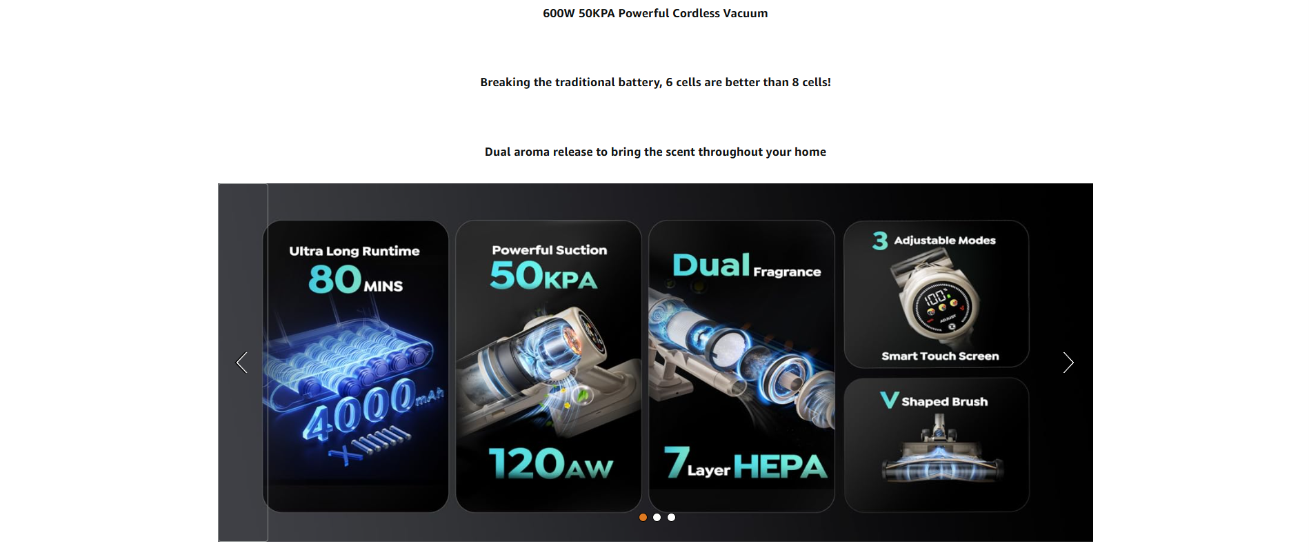 50KPA 超強力無線吸力: 提供高達 50kpa 的強大吸力,能有效去除沙發、椅子、樓梯、汽車內飾等處的多達 95% 嵌入式寵物毛髮,清潔速度快達 2 倍。