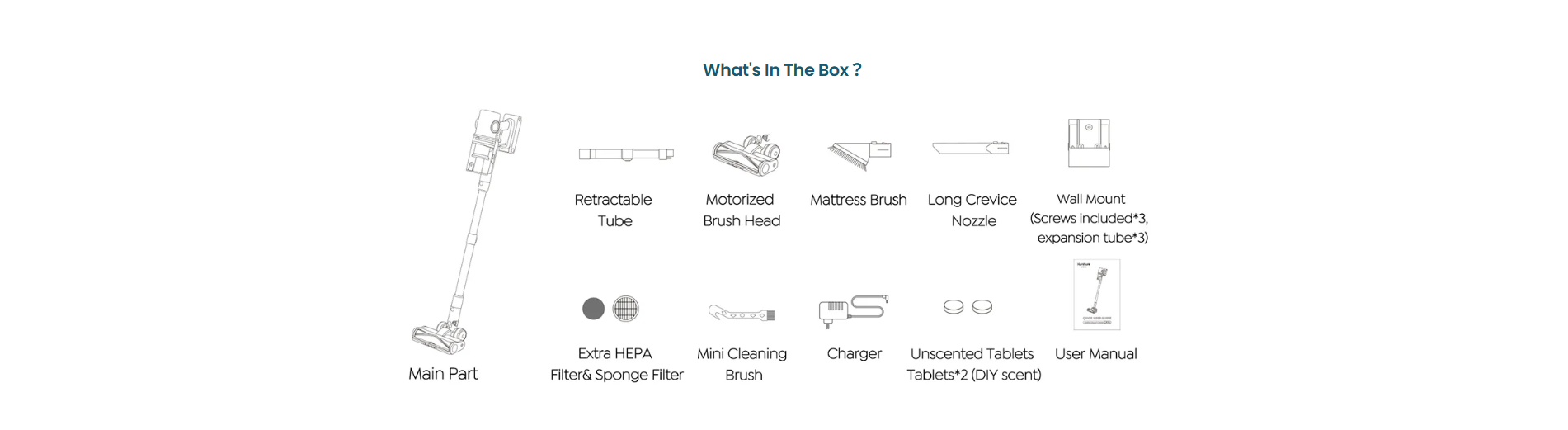 LED 頭燈: 可照亮黑暗區域,輕鬆發現灰塵和小碎屑。可輕鬆轉換為手動吸塵器,適合清潔家具、檯面或其他難以觸及的地方。