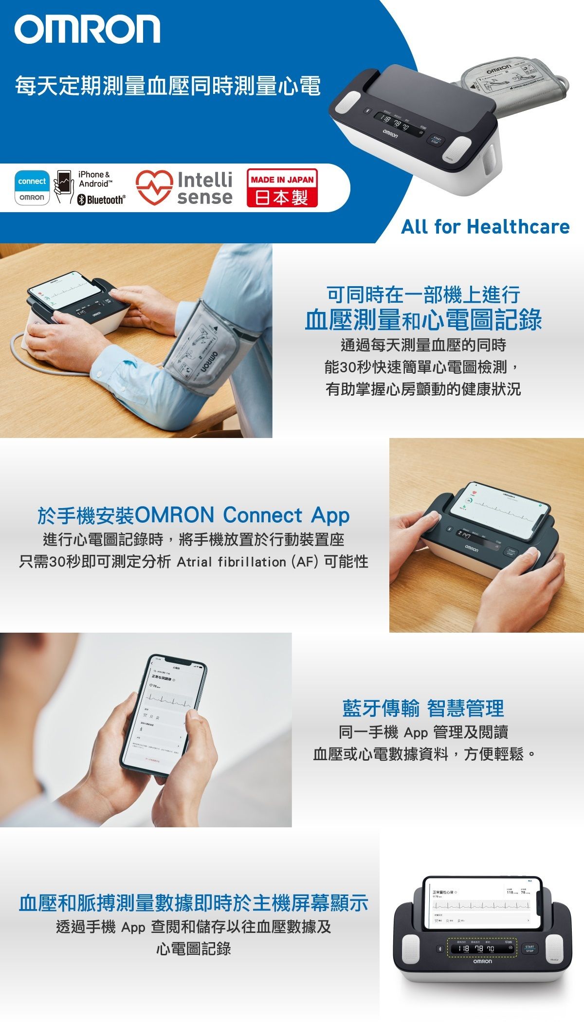 Omron - 歐姆龍 HCR-7800T 上臂式藍牙心電血壓計 (兼有心電圖儀) Blood Pressure Monitor【香港行貨】
