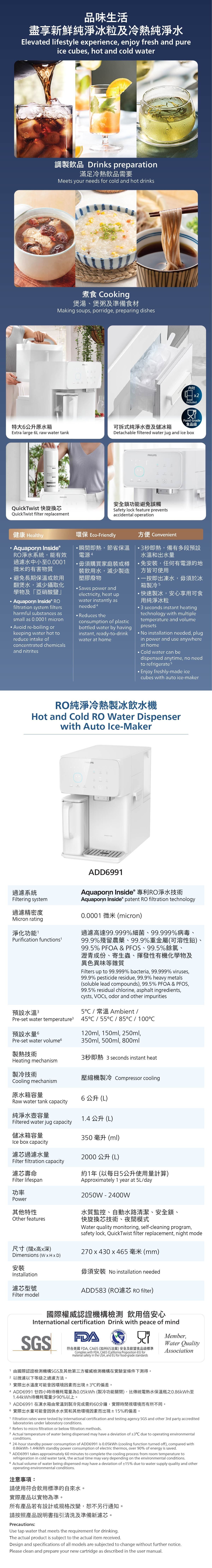 Philips 飛利浦 ADD6991WH RO純淨冷熱製冰飲水機 RO Water Dispenser