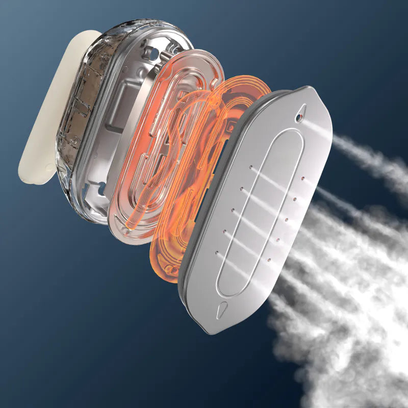 -壓力式納米蒸氣技術 ,比普通水霧顆粒細小20倍 ,滲入深層纖維,軟化織物,還原衣物質感 ,熨衣不濕衣