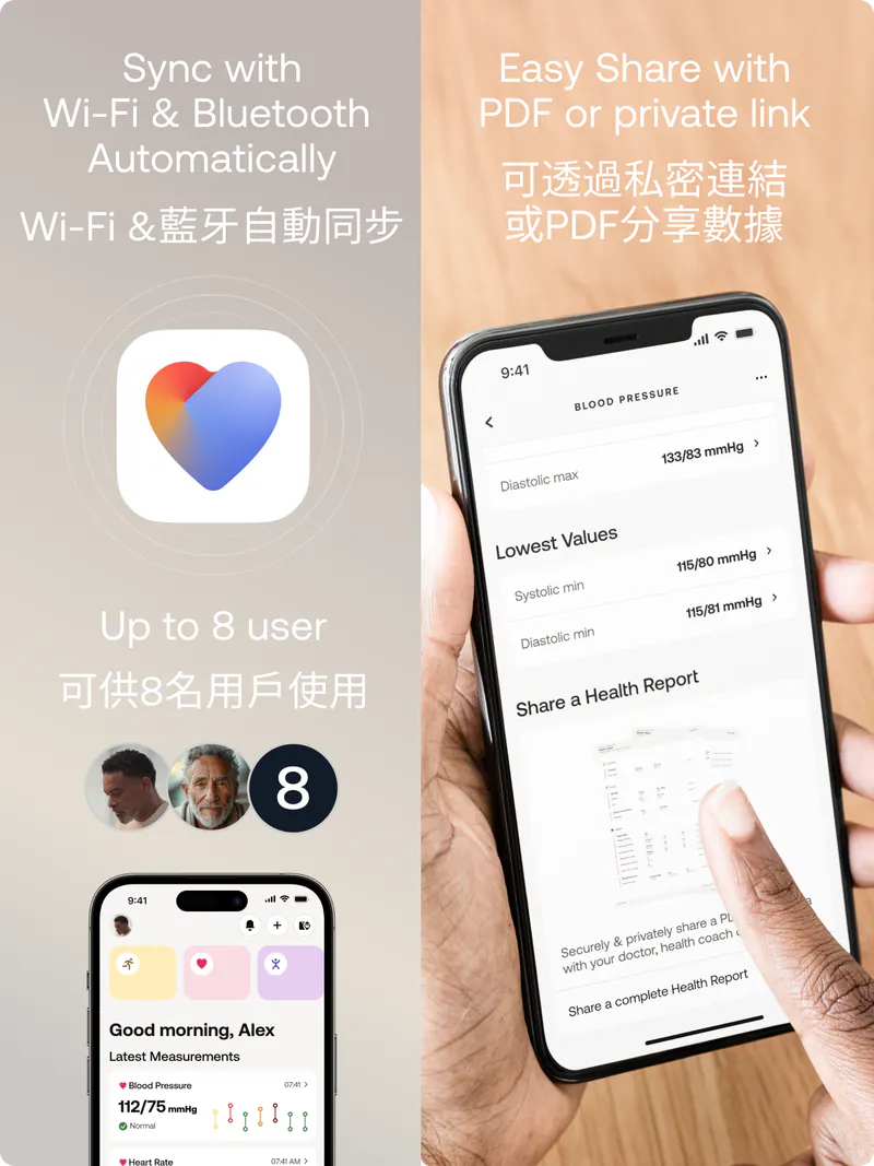 BPM Vision智能血壓監測儀結合臨床級精度與大尺寸彩色屏幕直覺化操作指引,將專業醫療級監測技術融入居家健康管理系統。